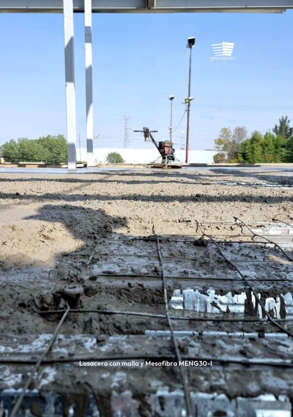 Con sus más de 77mil fibras por Kilogramo nuestra Mesofibra MENG30 incrementa considerablemente la resistencia y durabilidad a elementos prefabricados, pisos, trabes, columnas, etc. Gracias a su gran resistencia a la tensión y su elevado módulo de elasticidad aunado a su forma con cresta y valle logramos con nuestro modelo MEN30-I un estupendo anclaje en el concreto.